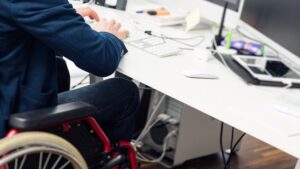 Это рабочее место, оборудованное с учётом индивидуальных особенностей инвалида и рекомендаций программы реабилитации: